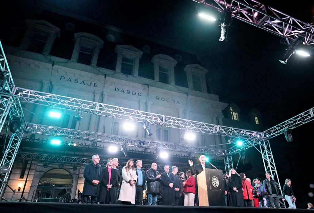 Durante el evento, el público disfrutó de la actuación de la orquesta Sindicato Argentino de Boleros, del espectáculo Tango Batix, dirigido por Iñaki Urlezaga, de la presentación de la Camerata Académica del Teatro Argentino y del debut del Coro Juvenil Municipal. También se destacó un impactante mapping sobre la fachada y una intervención de acrobacia aérea.